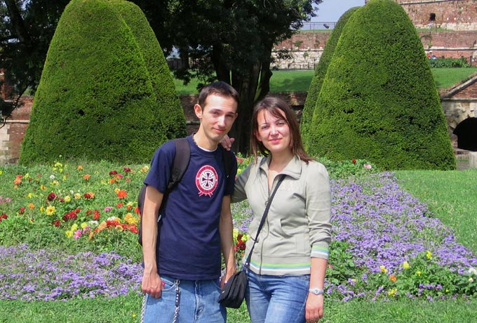 Meine Schwester und ich in einem Park vor einer Festung bzw. einem Museum. Das erste