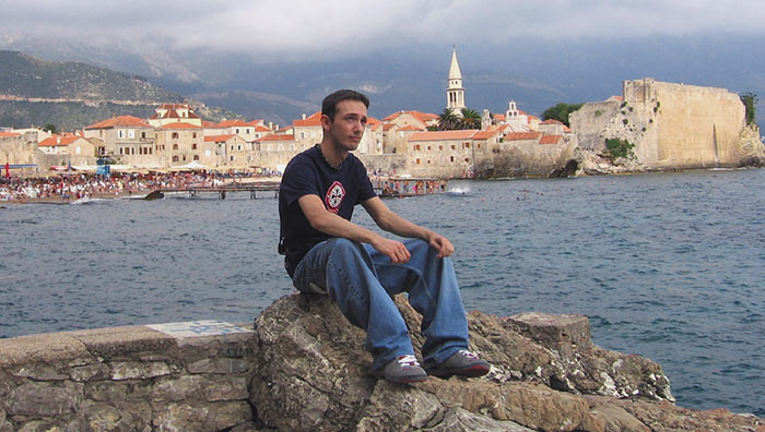 Hier bin ich auf der Terasse unseres Zimmers in der Altstadt von Budva: